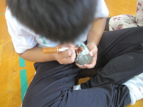 今年度も、彩雲堂の狩野さんをお招きし、『ひまわり』・『夏夜空』という上生菓子を子ども達と作りました。初めは子ども達も緊張気味でしたが、少しずつ慣れてきて上手に道具も使うことができるようになり、おいしい上生菓子ができました。